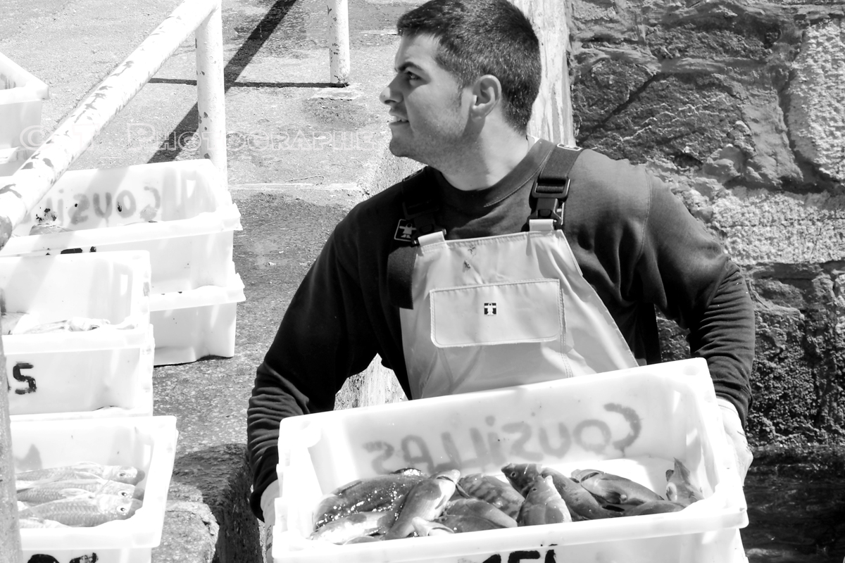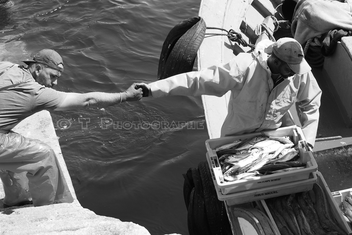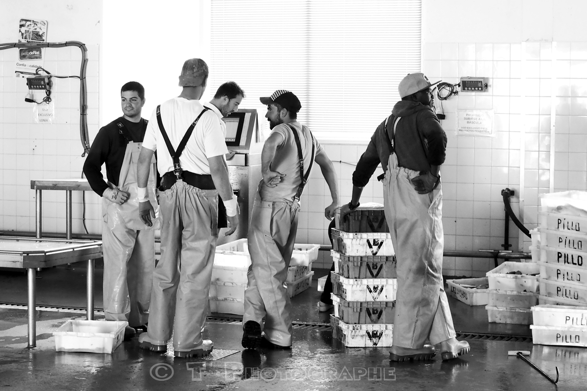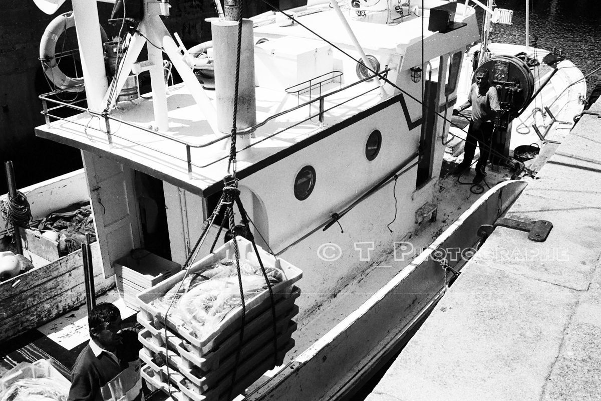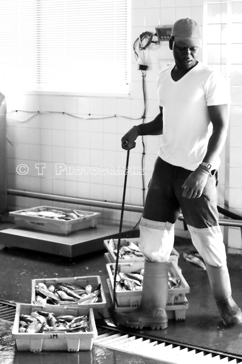 Voilà un sujet tout sauf bateau si je puis dire… Il faut plus d’une photo pour saisir cet univers à part : la dureté du métier, la diversité des tâches, une communauté de destins, la nécessaire solidarité, ses règles économiques (la criée), qui rappelle celui des mineurs sur lequel tu as déjà travaillé. Cet album retrace tout cela. La violence de la lumière même en rajoute pour évoquer la dureté du métier. Transpirent aussi la fierté sur certaines photos mais aussi sur d’autres l’inquiétude ou peut-être le désemparement autour du produit de la pêche. Il faut avoir en tête que c’est un secteur sinistré en Europe. Ne manque ici que la vie en mer, mais c’est une autre aventure !