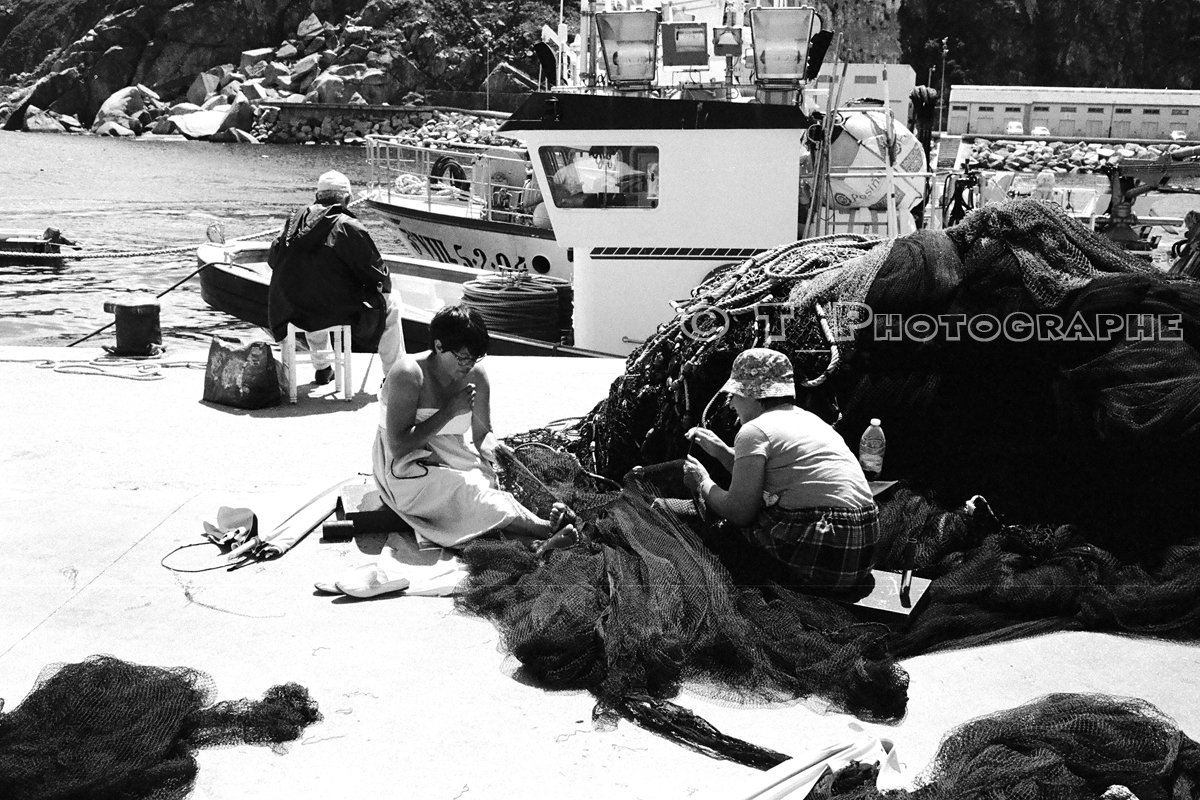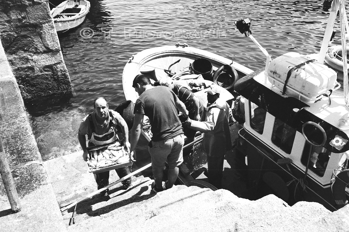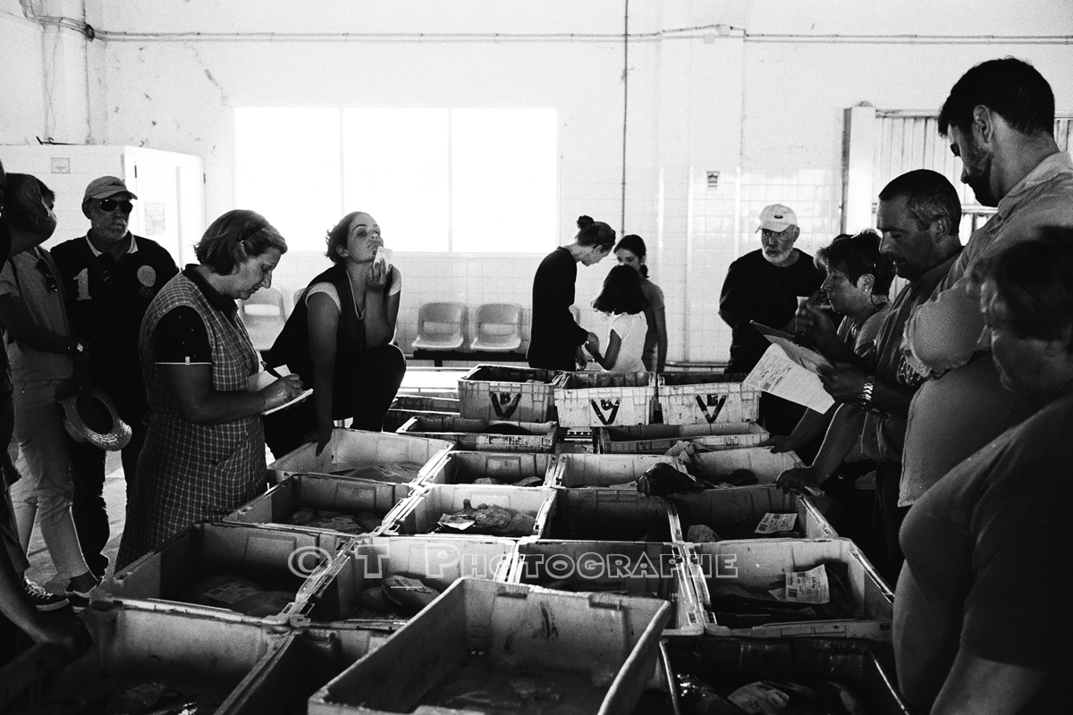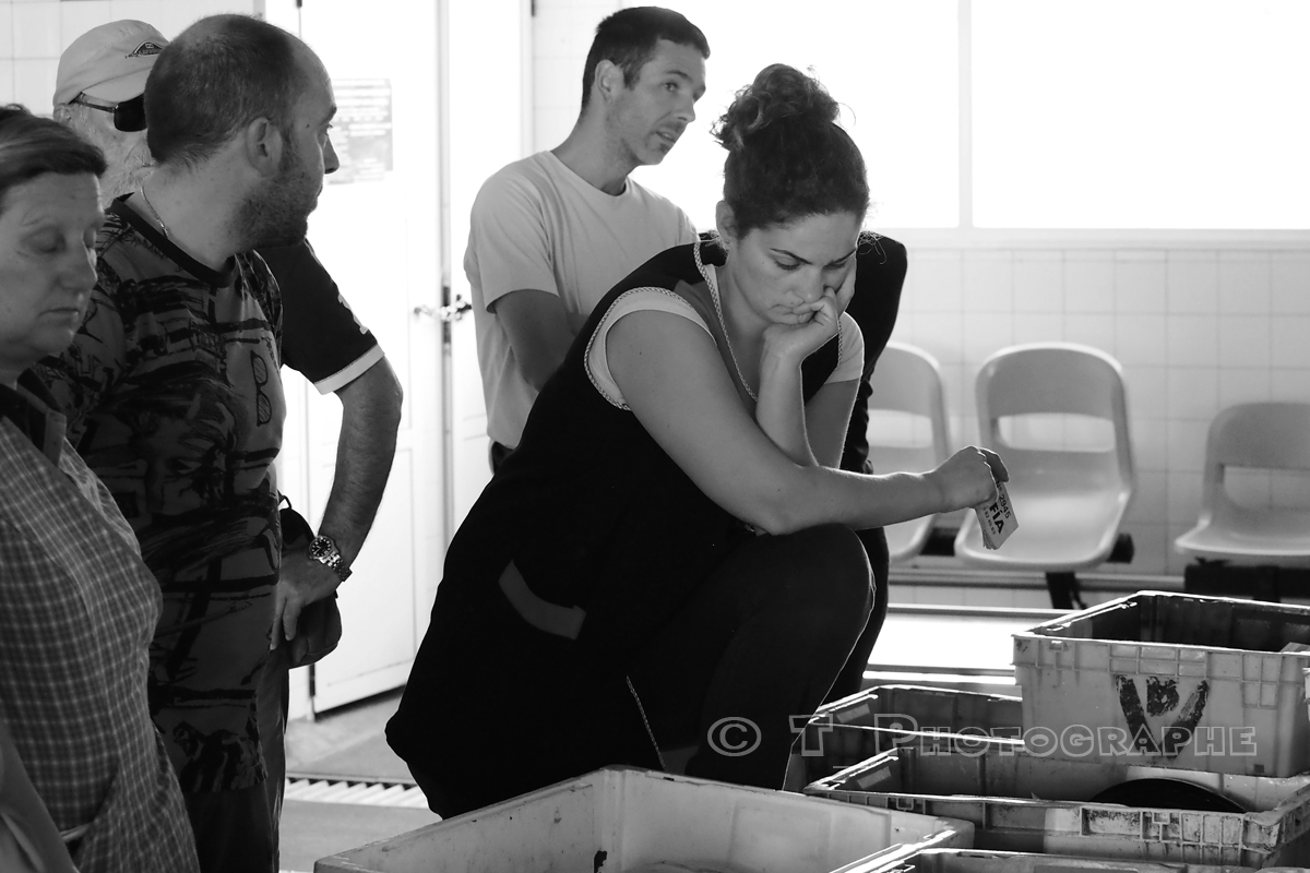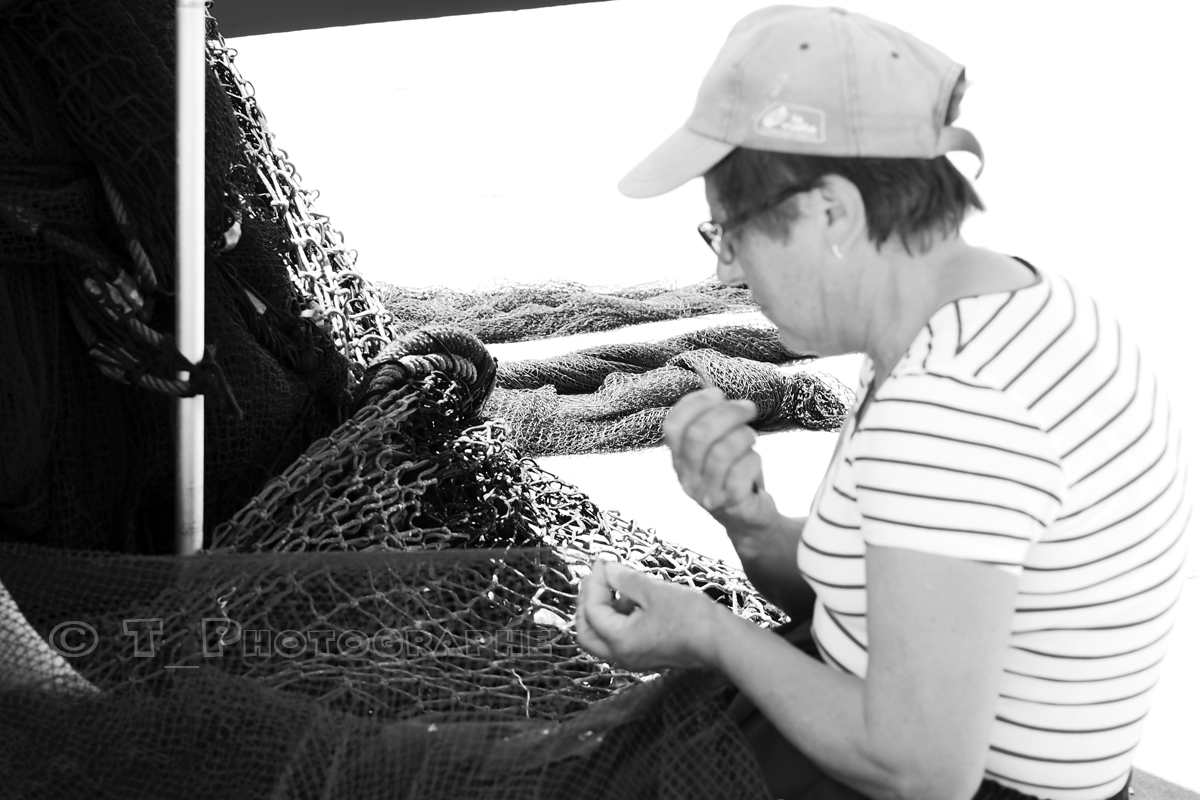 Voilà un sujet tout sauf bateau si je puis dire… Il faut plus d’une photo pour saisir cet univers à part : la dureté du métier, la diversité des tâches, une communauté de destins, la nécessaire solidarité, ses règles économiques (la criée), qui rappelle celui des mineurs sur lequel tu as déjà travaillé. Cet album retrace tout cela. La violence de la lumière même en rajoute pour évoquer la dureté du métier. Transpirent aussi la fierté sur certaines photos mais aussi sur d’autres l’inquiétude ou peut-être le désemparement autour du produit de la pêche. Il faut avoir en tête que c’est un secteur sinistré en Europe. Ne manque ici que la vie en mer, mais c’est une autre aventure !