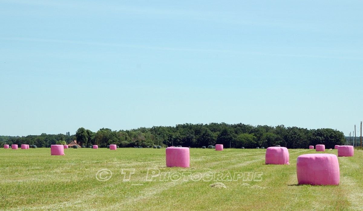 Quand j’ai vu ces bottes de foin enrubannĂ©es de rose, j’ai pensĂ© Ă des gros chamallows đ