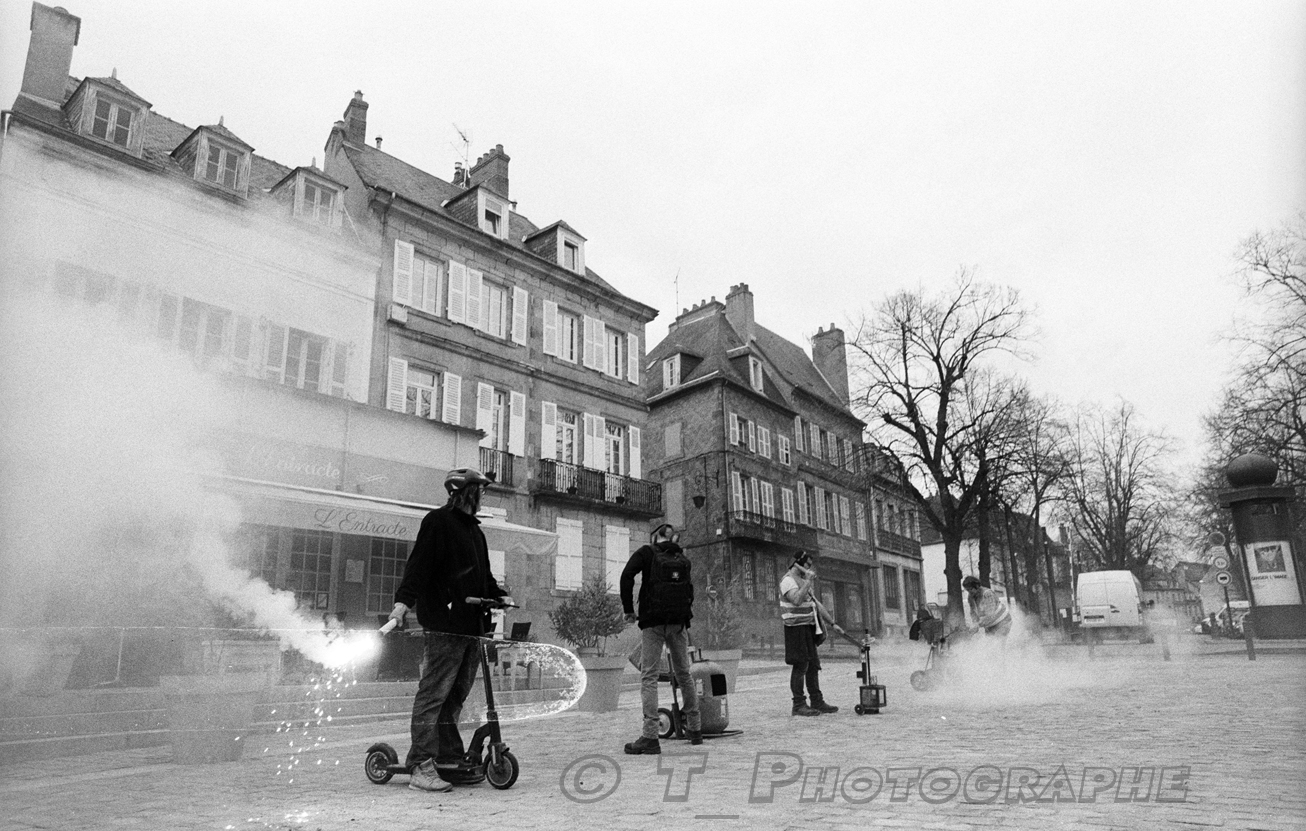 1. Voilà une nouvelle série avec un objectif différent, donc un point de vue différent de la série précédente (Union syndicale). Les scènes saisies au 50 mm me convainquent davantage que celles prises au 24 mm. Les secondes sont plus brouillon car dans le cadre, trop d’éléments perturbateurs sont présents (d’autres photographes, de la signalétique hors de propos…), et comme le grand angle induit de la distance quand l’objectif n’est pas sous le nez d’un sujet principal, tout cela affadit le sens perçu au moment du déclenchement.