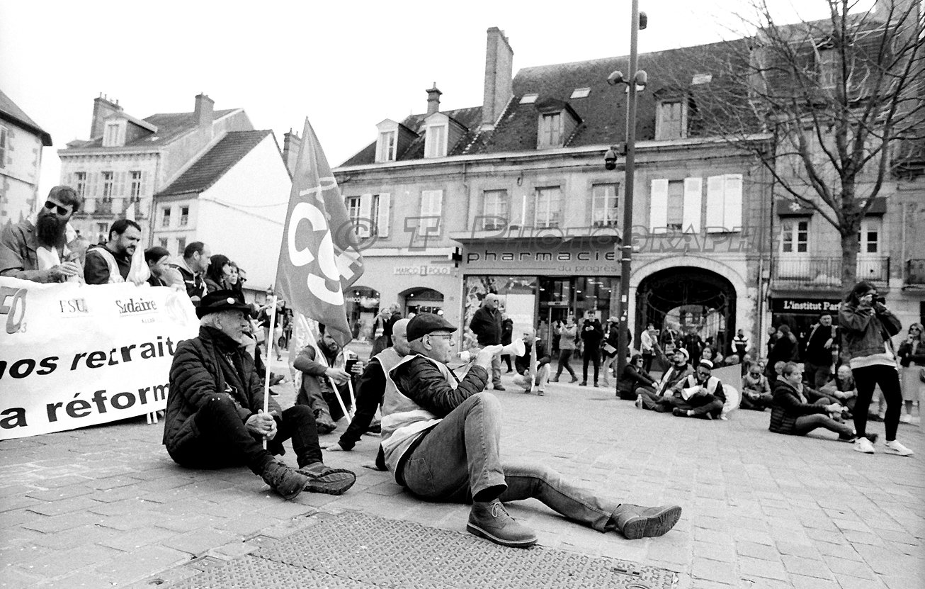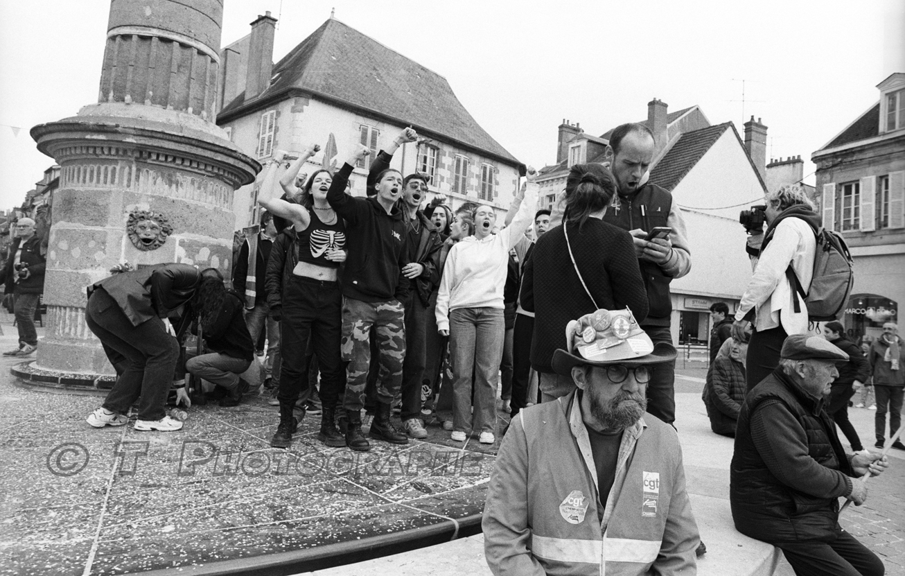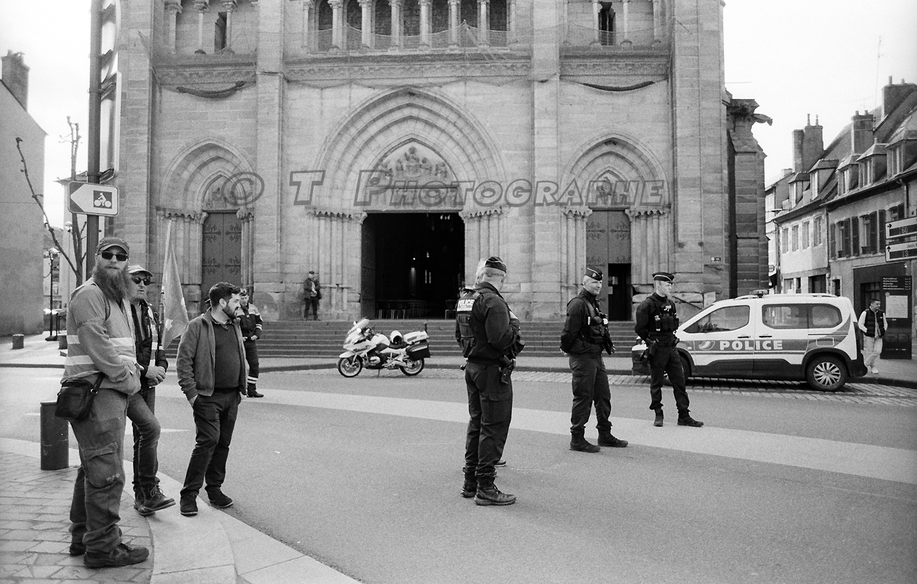 Pour conclure, photographier une foule qui a conscience d’être une foule est un énorme défi : il ne faut pas être porté par elle mais psychologiquement rester en retrait pour mieux l’observer. C’est ainsi qu’on produit des pépites comme celle du flic et du syndicaliste que tu as attrapée, au 50…