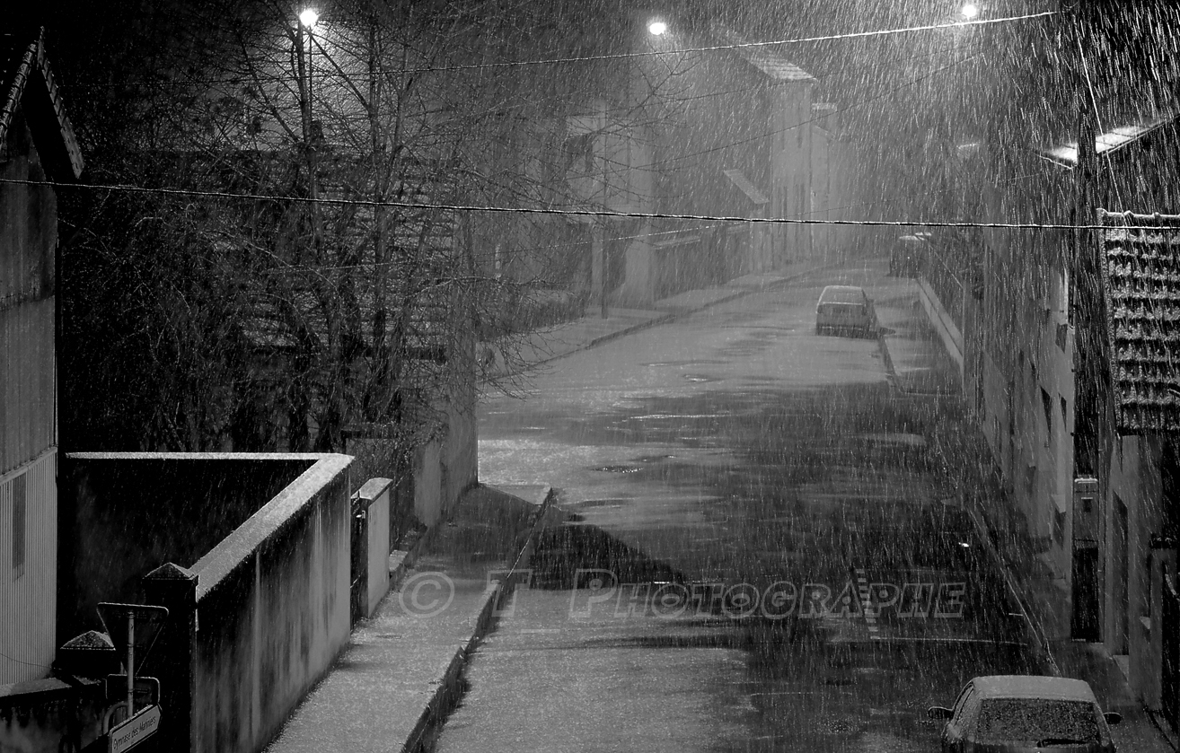 Très beau cliché, la pluie irisée par les réverbères et les toits brillants, bref un temps de chien (pour faire écho aux loups;) ) et toi tu en fais une merveille.